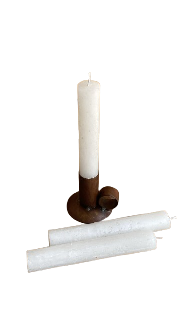 O Castiçal Rústico em Ferro é uma peça artesanal que une simplicidade e elegância. Produzido em ferro com acabamento envelhecido, traz charme e aconchego para composições de mesa posta, jantares especiais e decoração natalina.
